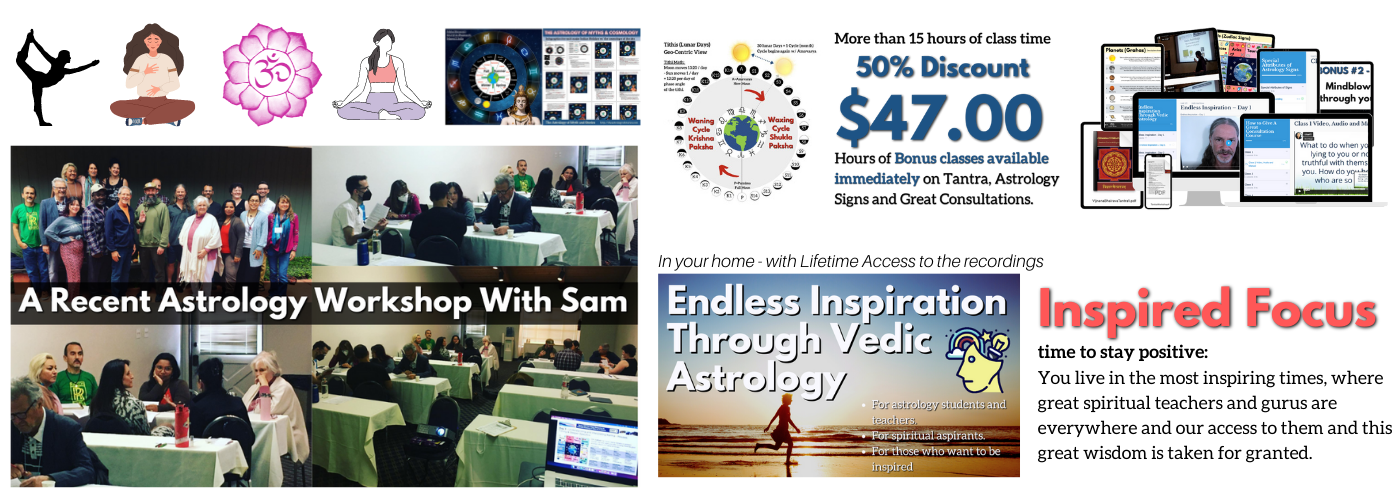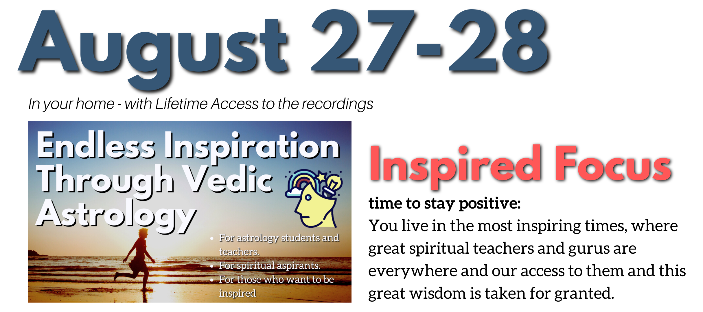 I'm taking an entire weekend to explain the concept of “Endless Inspiration” as shown through Vedic astrology. In this weekend class I will go through every planet sign and house and breakdown the inspired life choice it has led you to.